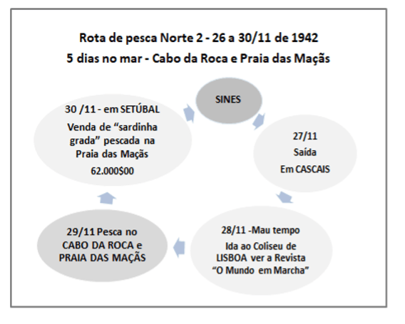 – Dia 30, 2ªfª: “em Setubal vendemos 62.000.00 de sardinha grada, apanhada no mar da Praia das maçãs Saímos para Setubal às 1.20 da madrugada”